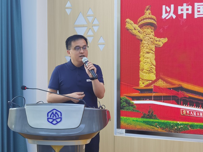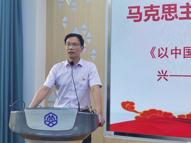 唐忠宝以《以中国式现代化全面推进中华民族伟大复兴——深入学习贯彻党的二十大精神》为题展开精彩党课。从“人口规模巨大的现代化”“全体人民共同富裕的现代化”等中国式现代化的五个方面内容进行了深刻解读,重点阐述了习近平新时代中国特色社会主义思想的世界观和方法论、中国式现代化的特色和本质要求,并以白江口之战、万历朝鲜之役、中日甲午战争、抗美援朝等战役为例阐述我们要敢于斗争和善于斗争。