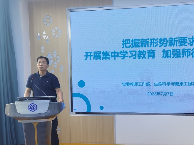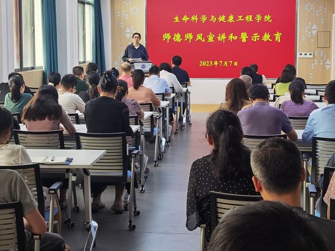 7月7日下午,生命科学与健康工程学院师德师风警示教育暨暑期工作部署会在学院306会议室举行。学院党政领导班子及全体教职工参加。会议由生命科学与健康工程学院党委书记史志洪主持。