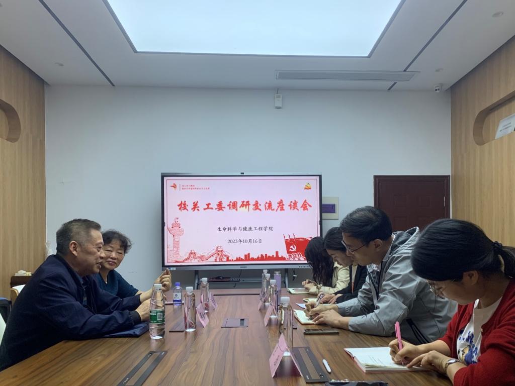 10月16日上午,校关工委副秘书长吴骥一一行赴生命科学与健康工程学院开展调研交流,指导学院关工委优质化建设工作。学院党委书记史志洪、党委副书记兼副院长蒋艳、关工委常务副主任詹鲁、分团委书记兼学工办主任王珏及辅导员陆冁君参加了本次会议。