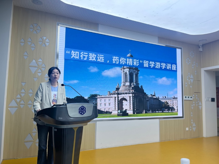 随后,都柏林大学大中华区主任俞兆源从院系设置、学术架构、优秀毕业校友、申请条件、学费与奖学金等方面详细介绍了都柏林大学的情况,讲解了爱尔兰的医药产业、就业与工作签证、自然人文环境等整体情况,并着重介绍了与学院签订的“3.5+0.5+1”留学项目,为生科学子增设了一条升学深造的潜力路径。同学们踊跃参与互动,并针对出国留学程序、留学时间节点等问题与老师进行交流讨论,现场氛围热烈,同学们收获颇丰。