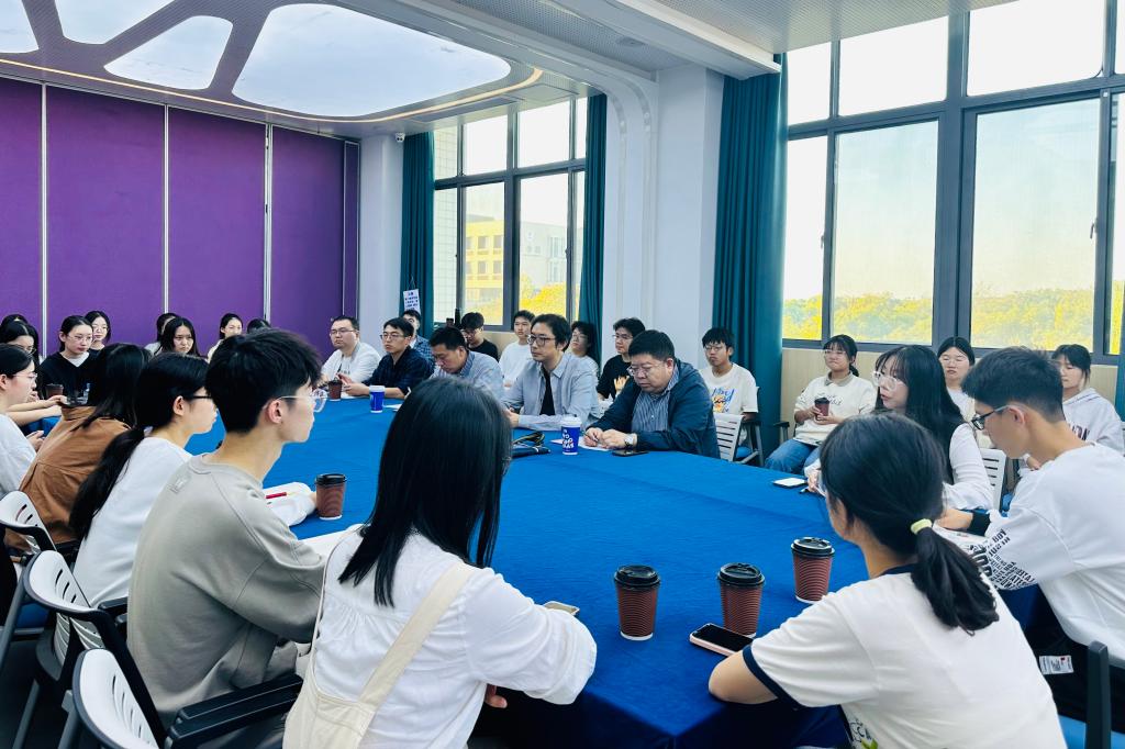 会议伊始,尹健对学院人才培养、学科特点、专业前景以及本次座谈会的背景和主题作简要介绍,鼓励同学们畅所欲言、广开思路,对所需所想提出建议意见,为学院拔尖创新人才培养积极建言献策。随后,学生代表依次发言介绍了个人情况,分享了江南求学的感受和体会,畅谈了在校期间的规划和期待,并对学院老师的耐心教导、亲切关怀表示感谢。同时,结合自己在学习、科研、生活中遇到的问题和困惑,围绕“研究生科研素养”“博士生科研方向”“本科生科研训练”“课程设置与专业学习”“职业规划与就业选择”等学风建设关键词进行交流研讨,现场气氛十分热烈。