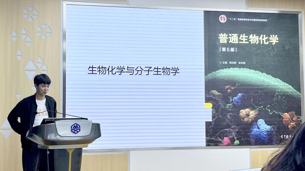 会议伊始,张世祺讲述了聘任学业辅导员的重要性及评选办法,并强调了评选工作的公平、公正、公开。随后,19位学业辅导员候选人依次上台进行PPT教学展示,讲解内容覆盖大学物理、高等数学、有机化学、生物化学、线性代数等重点学科。各位学业辅导员候选人的讲解自然流畅,紧紧围绕题目重难点深入剖析,尽显高专业素养和教学能力。最后,张世祺强调学业辅导员要发挥朋辈教育作用,要走进课堂、走进晚自习,分享自己的学习笔记、心得感悟,为学习困难的同学提供帮助,真正提高同学们的专业素质水平。