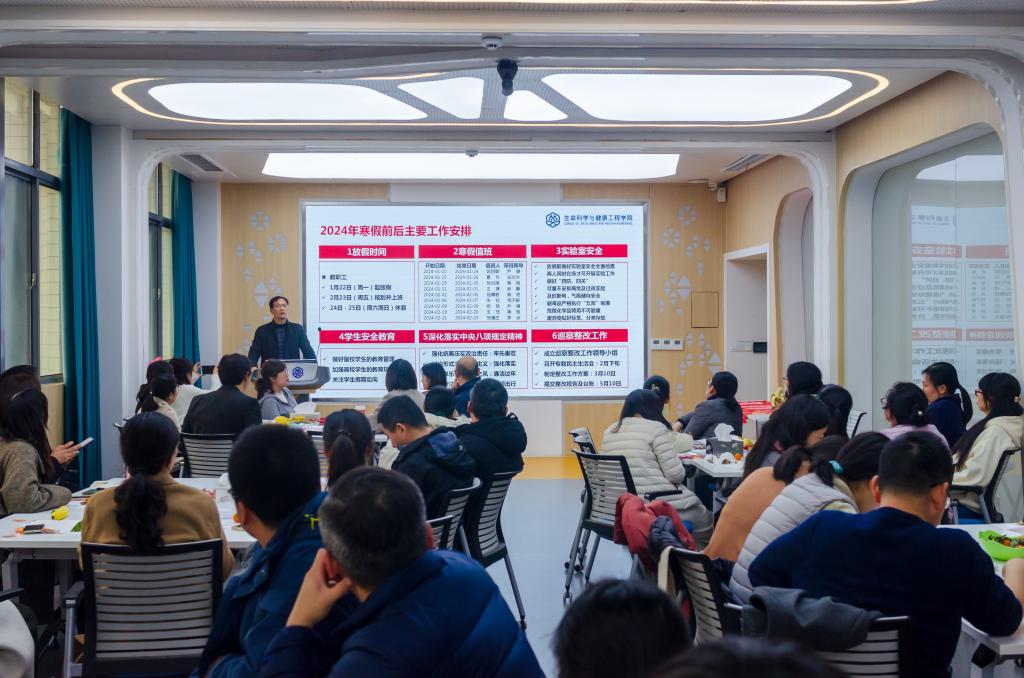 1月18日下午,生命科学与健康工程学院教职工大会在生科楼306会议室召开,学院领导班子成员、全体教职工参会。会议由学院党委书记史志洪主持。