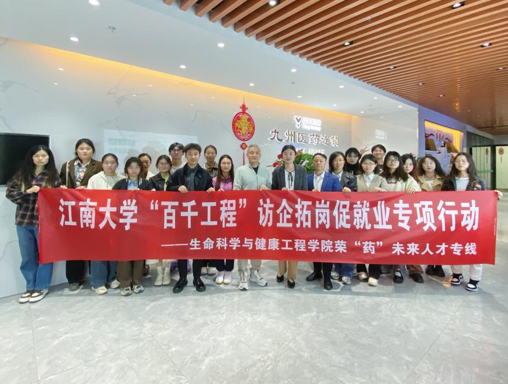 为深入贯彻落实党中央、国务院关于高校毕业生就业创业工作的决策部署,进一步搭建用人单位和毕业生双向选择的交流平台,推进校企合作、加强人才培养、拓宽就业渠道,4月10日下午,生命科学与健康工程学院党委副书记兼副院长蒋艳、就业辅导员张世祺及本研学生代表,赴无锡九州医药连锁有限公司开展“百千工程”访企拓岗促就业专项行动,公司总经理、创始人贾振斌,总经理助理、工会主席吕萍,行政副总连响平,质管副总李锦红,人资部部长柳艳娜等热情接待了调研队伍,并与师生座谈交流。