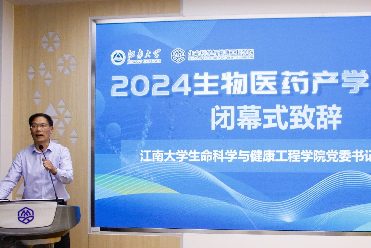 闭幕式上,生命科学与健康工程学院党委书记史志洪作总结讲话。他希望,通过论坛可以推动彼此在学术研究上共进、在产业上共赢,全面推进产学研的深度融合,共同促进江南大学生物医药学科建设和办学水平的不断提升,谱写合作共赢的新篇章。