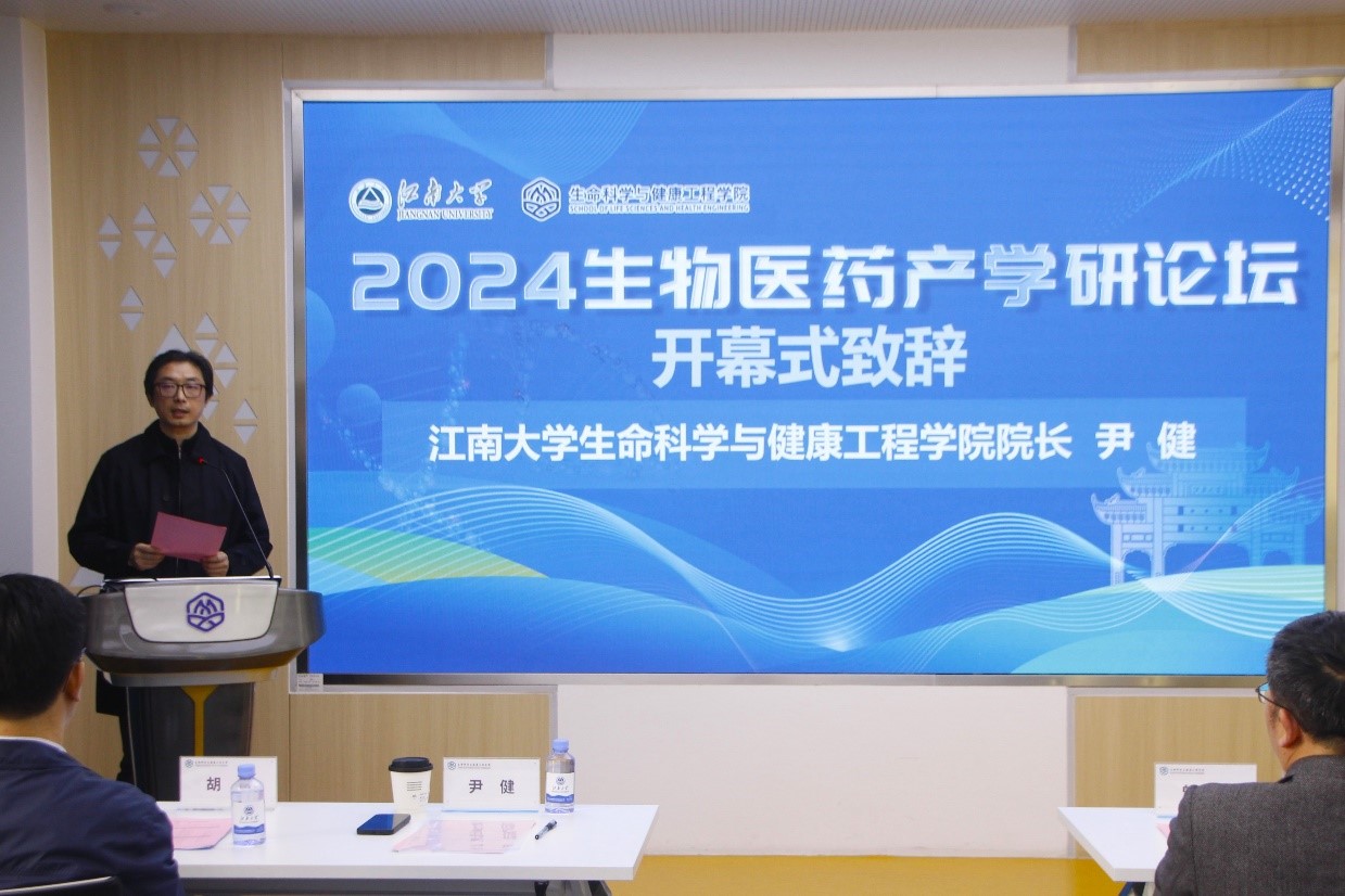 生命科学与健康工程学院院长尹健向参加论坛的嘉宾和师生致以诚挚的感谢,并表示,希望论坛发挥桥梁和纽带作用,发挥高校与企业各自的优势,促进教学科研与产业实践相结合,努力探索构建新时代的科技创新体系。推动生物医药产业的创新发展,为无锡乃至全国健康医药人才培养和生物制药事业的新发展提供有益助力。