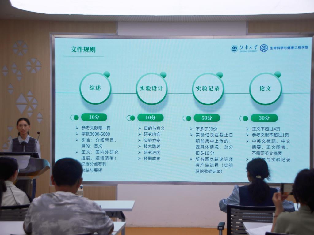 曾获第九届全国大学生生命科学竞赛二等奖的冯丹婷,从研究竞赛的文件规则入手,结合自身丰富经历与深刻总结的经验,细致地从综述、实验设计、实验记录、论文四个关键方面展开分享。每一个技巧的传授、每一处细节的完善、每一条建议的提出,都如同点点星光,让同学们对赛事有了更深入的理解,收获满满,受益匪浅。