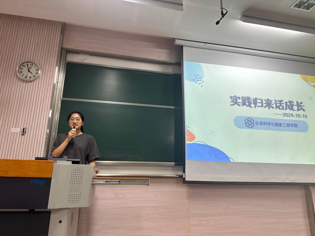为深入学习贯彻习近平新时代中国特色社会主义思想,全面贯彻落实习近平总书记关于青年工作的重要思想,鼓励生科青年学、思、用贯通,知、信、行统一,深入挖掘和展示暑期社会实践中的优秀成果,充分发挥优秀团队的示范引领作用,10月16日下午,生命科学与健康工程学院分团委于2C203成功举办“青春为祖国,挺膺勇担当”实践归来话成长分享会。生命科学与健康工程学院分团委书记兼学工办主任王珏、七支实践团队成员代表和2024级新生百余人出席本次会议,活动由社会实践部支涵婧主持。