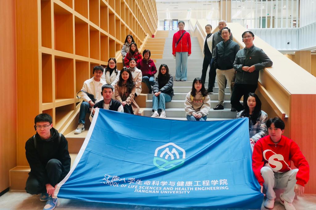 上午,学院师生前往江南大学江阴霞客湾校区参观学习。在江阴校区管理办公室主任王珏的引导下,师生一行深入图书馆、宿舍楼、食堂等参观了解各类教学、服务设施运行情况。校区将校园文化与学科特色相结合,以江南水乡为意向,充分体现“绿色、和谐、智慧、人文”的规划建造理念,是具有江南大学历史文化传承和学科特色的现代化新校区。位于校区中轴线上的图书馆,吸引了师生驻足的目光。其外部造型为三本叠在一起的书,内部造型也以相似结构打造了从上到下、一贯到底的巨型书墙,尽显学术底蕴。通过实地参观和考察,师生代表深入感受到新校区蓬勃发展的活力,激发了师生们为学校建设事业持续奋斗的热情与信心。