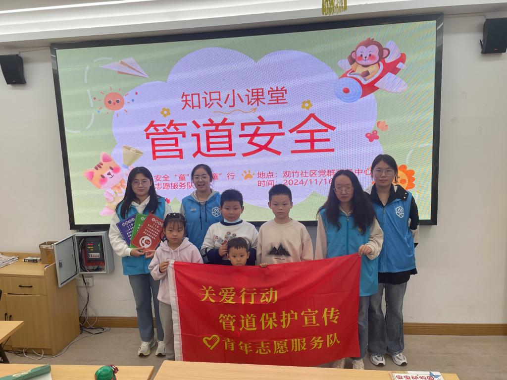 在我国,每年约有3万起儿童意外事故与管道相关,其中近半数发生在家庭及社区环境中。管道虽平常,却隐藏着诸多儿童安全隐患。为增强儿童管道安全意识,减少事故发生,生命科学与健康工程学院安全“童”伴“童”行志愿服务队(成员:何艾嘉、刘智垒、李慧琳、张咏春、张传莹、孙习更、松泽亮、张嘉鑫、张雨洁、王冶、王慧青)于2024年11月和12月在清舒社区、景贤社区等多个社区精心组织多场儿童管道安全知识宣讲活动,众多儿童踊跃参与,共同学习管道安全的关键知识。