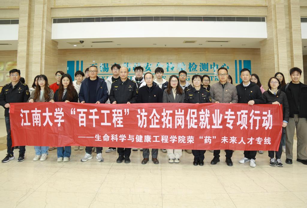 无锡市市场监督管理局机关第七党支部书记兼药品进口备案办公室主任詹征峰、药品和化妆品监督管理处处长蒋丽媛、药品进口备案办公室副主任贾路、医疗器械处陈林坤,无锡市药品安全检验检测中心党总支书记兼主任陈国清、党总支副书记兼副主任张聪、第一党支部书记王丽等热情接待江大生科院师生一行,并与师生座谈交流。