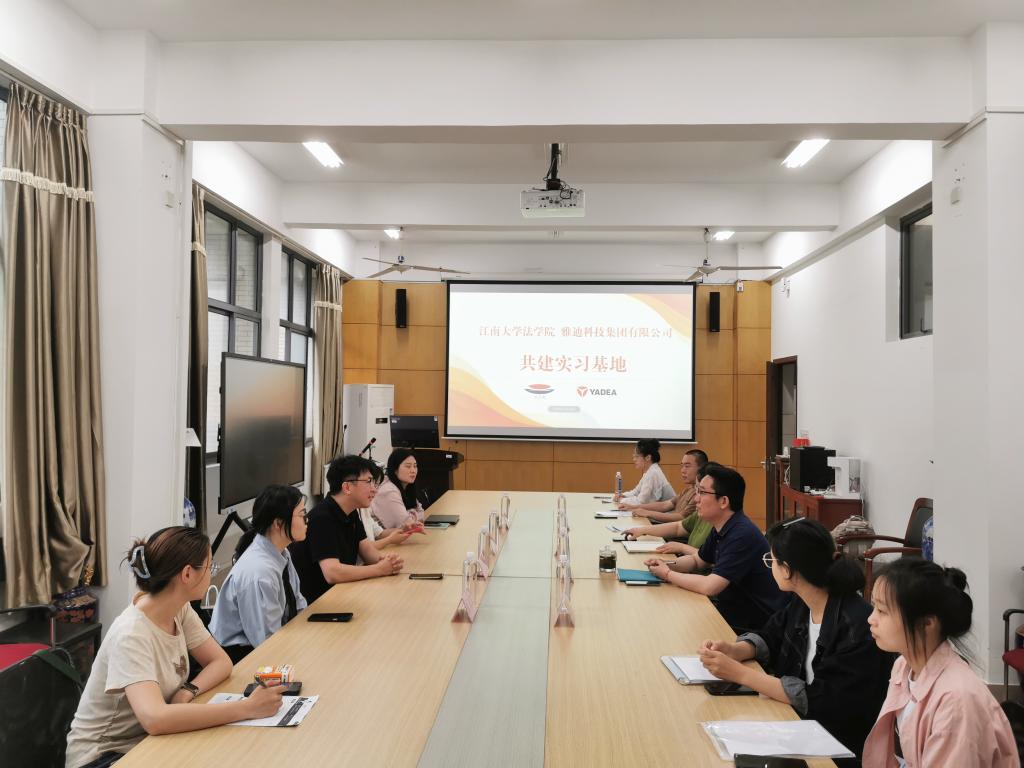 5月23日上午,法学院与雅迪科技集团有限公司在A316会议室举行实习基地共建交流会暨校园招聘宣讲会,进一步深化校企合作,推动法学人才培养与行业需求对接。法学院党委书记陆秦、党委副书记胡博、副院长任卓冉、团委书记徐雅静出席活动,与雅迪科技集团审计监察与法务中心总监周其钦一行就人才培养、实习就业等议题展开深入交流。