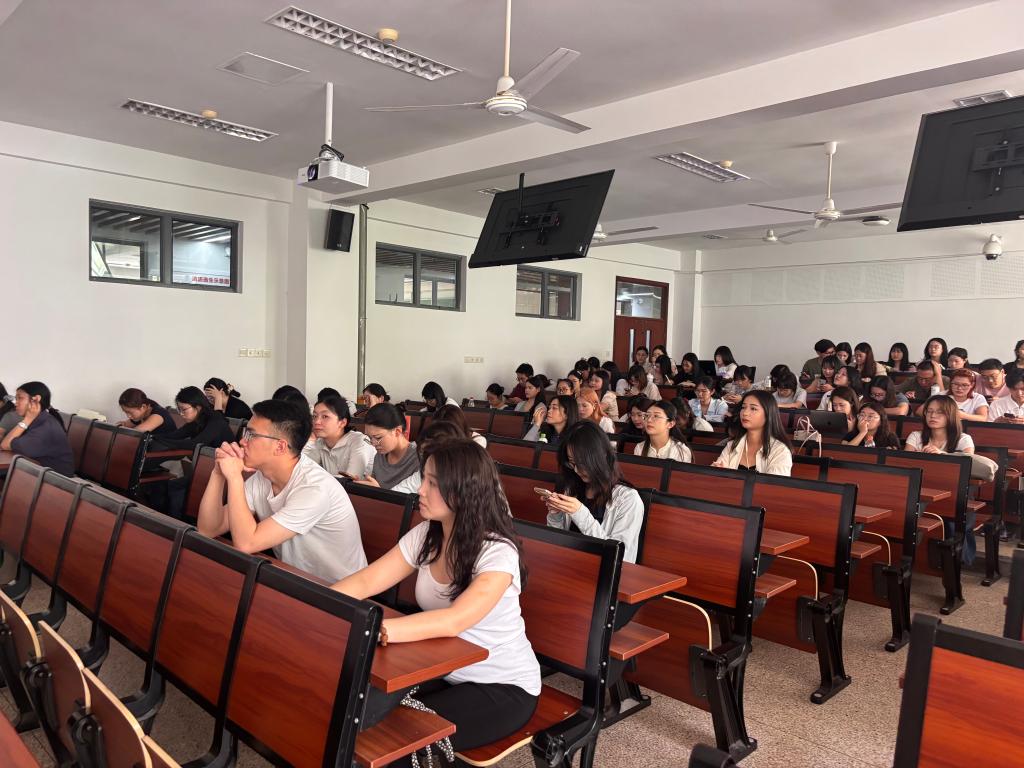 为进一步加强毕业生党员教育管理工作,扎实推进党团组织关系顺利衔接,增强毕业生党员党性修养,6月5日,法学院在二教举行“不忘初心,筑梦远航”2025届毕业生党员主题教育暨毕业生组织关系转移培训会,法学院党委副书记、副院长胡博,全体本硕毕业生党员共计120余人出席了本次活动,会议由党建辅导员缪晶晶主持。