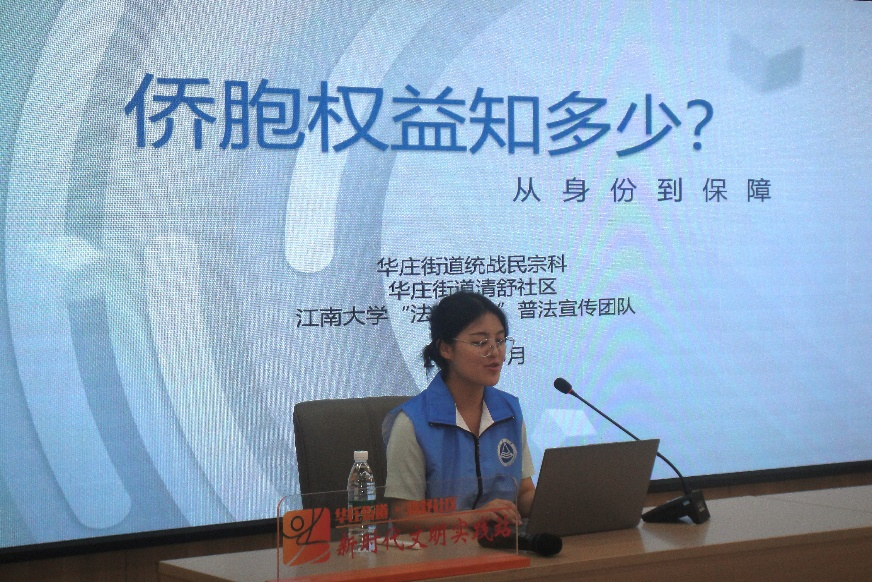 近日,江南大学“法在身边”普法帮扶团队走进清舒社区开展“侨胞权益保护与反诈宣传”主题普法宣讲活动。本次活动聚焦侨胞群体关心的法律问题,通过案例解析、政策解读和互动答疑,为社区居民送上了一份实用的“法治大礼包”。