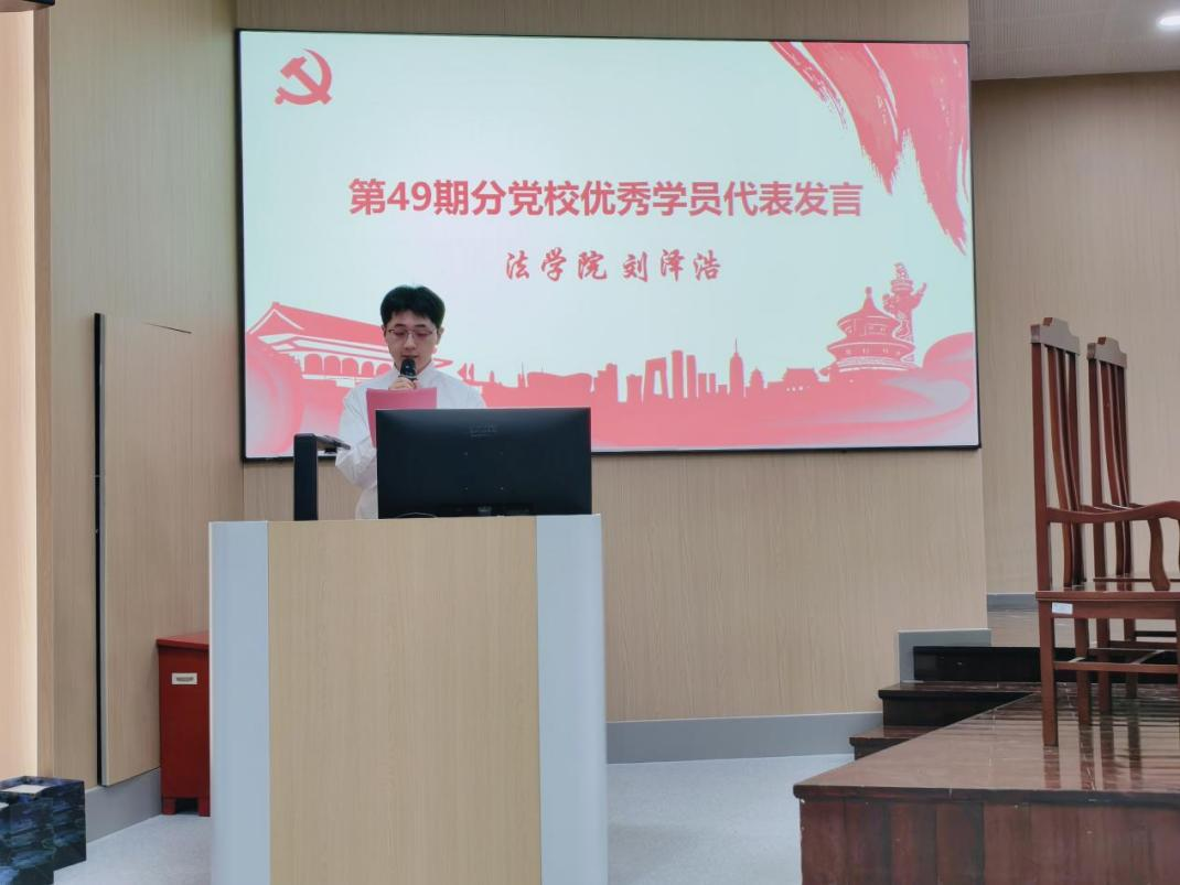开班仪式在《国歌》旋律中拉开帷幕,激荡着现场每一位学员的爱国情怀与入党初心。党建辅导员缪晶晶老师进行开班动员,她介绍本次培训班学习安排与规范要求,指出党校培养用党的科学理论武装青年、用党的初心使命感召青年,希望同学们以良好的精神面貌与进取的奋斗姿态积极向党组织靠拢,以实际行动勇担时代责任和历史使命。第49期优秀学员代表、法学院2022级刘泽浩同学发言。他结合自身学习经历,认为学生党员是连接党组织与广大同学的桥梁和纽带,要在专业学习上刻苦钻研、争当表率,在品德修养上严于律己、引领风尚,时刻以更高标准检视自己,展现新时代青年的价值与风采。随后,举行党旗交接仪式。第49期学员代表刘泽浩同学将党旗授予第50期学员代表周彤烨同学。全体学员进行宣誓仪式,誓言铿锵,掷地有声,充分展现学员们积极向党组织靠拢、矢志奋斗的坚定决心。