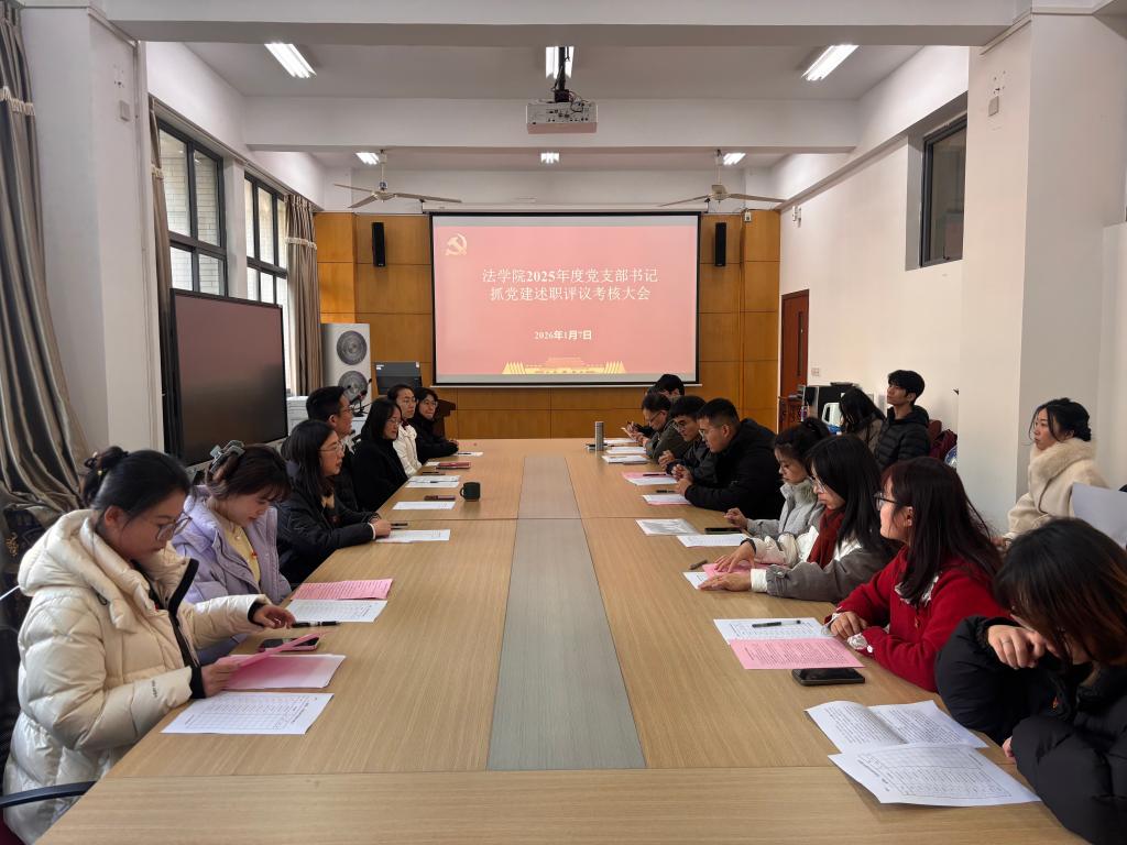 1月7日下午,法学院在学院A316会议室组织召开2025年度基层党支部书记述职评议大会。法学院党委书记陆秦,党委副书记、副院长顾云艳,各师生党支部书记及党员代表等30余人参加会议。