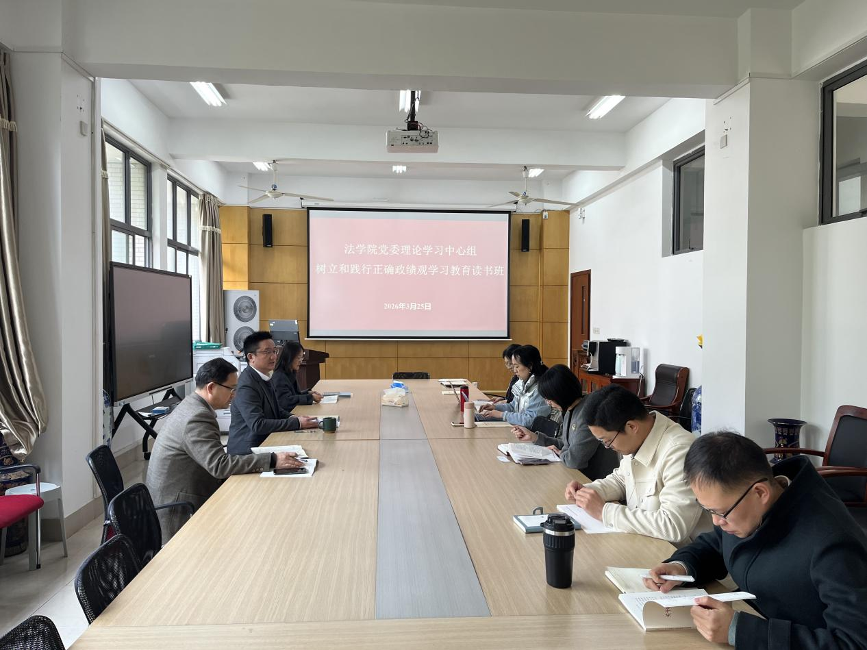 3月25日下午,法学院党委理论学习中心组树立和践行正确政绩观学习教育读书班开班仪式在A316会议室举行。法学院党政领导班子成员、院长助理、教师党支部书记参加开班仪式并集中学习,学院党委书记陆秦同志主持会议。