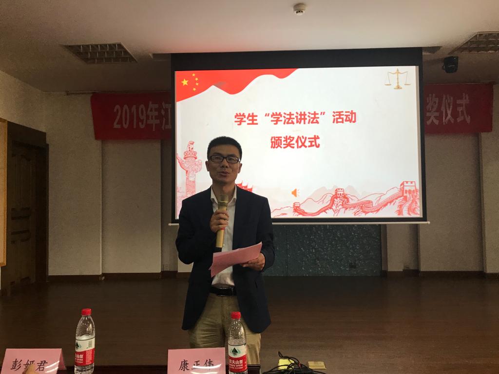 活动伊始,杨杰致辞,他表示本次学生“学法讲法”系列活动在增强法制宣传的实效,在全校范围内普及法律知识,提高师生法律意识和法律素养,加强校园法律文化建设,推进“依法治校、创建和谐校园”进程,引导全校师生信仰法律、遵守法律、维护法律、运用法律等方面具有重大意义,通过今天的演讲比赛,希望同学们实践法学院“厚德明法,载道济世”的院训,使学法、讲法、用法观念深入心中。