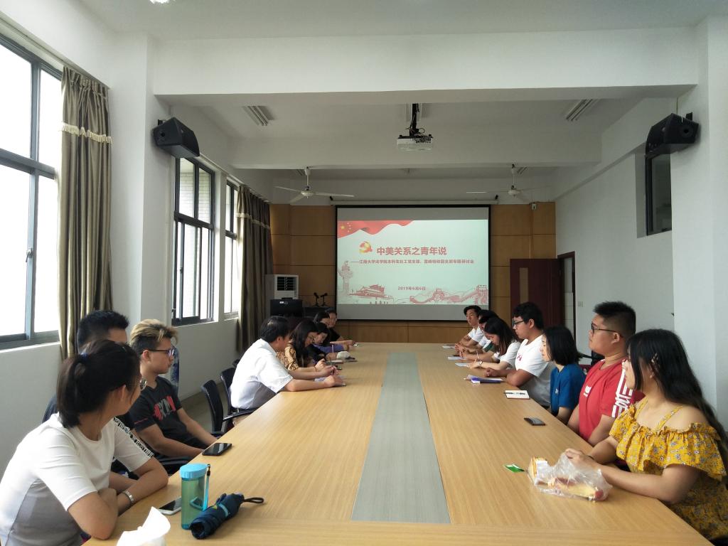 中美新一轮贸易战剑拔弩张之时,为了让法学学子深入了解国内外政治局势,洞悉国家政策,更加深入地理解个人与国家命运共同体概念,法学院于6月6日上午于学院A316会议室组织开展“中美关系之青年说”党团共建专题研讨会。学院党委书记杨杰、副书记张慧琪、分团委书记胡博、辅导员帕日旦木以及社工本科党支部、雷锋特称团支部学生代表出席了本次研讨会。
