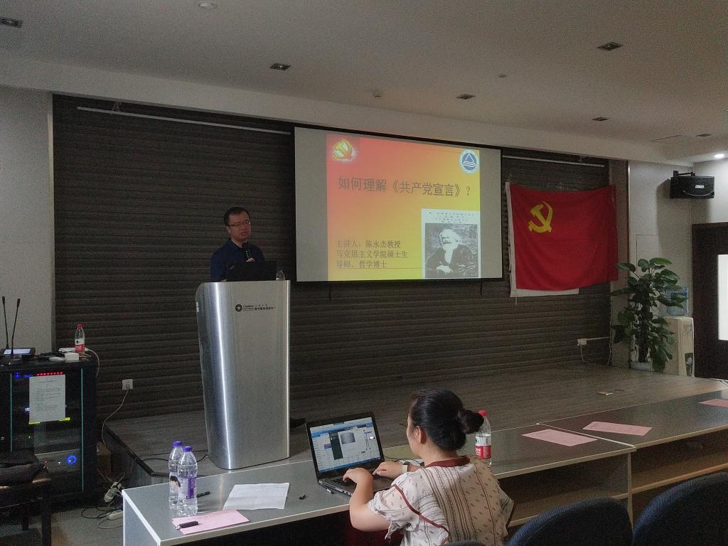 9月28日,外国语学院副书记、副院长刘伯贤从党性、党的历史经验教训、指导思想等方面进行具体阐述,强调“入党不是一时之事,而是长长久久地坚持”,指明党员行动指南、奋斗目标。同时,他推荐相关书籍和影视作品,希望大家在课余时间能够了解更多有关于党的知识;紧接着,马克思主义学院陈永杰教授给大家讲述如何理解《共产党宣言》。陈教授从《共产党宣言》的作者、背景、方法论、共产主义的基本特征等几个方面进行深刻剖析,为大家展现《共产党宣言》内在意义。