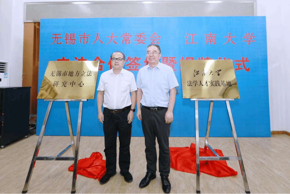 为进一步加强校地合作,加快促进地方智库建设,9月30日上午,江南大学与无锡市人大常委会合作共建“无锡市地方立法研究中心”签约暨启动仪式在江南大学法学院学术会议厅举行。市人大常委会副主任吴峰枫、市人大常委会副秘书长张淇铭、江南大学校长助理张光生、江南大学法学院副院长(主持工作)王君柏等相关领导和部分教师代表参加了揭牌仪式。仪式由市人大常委会法制工委主任李赢主持。