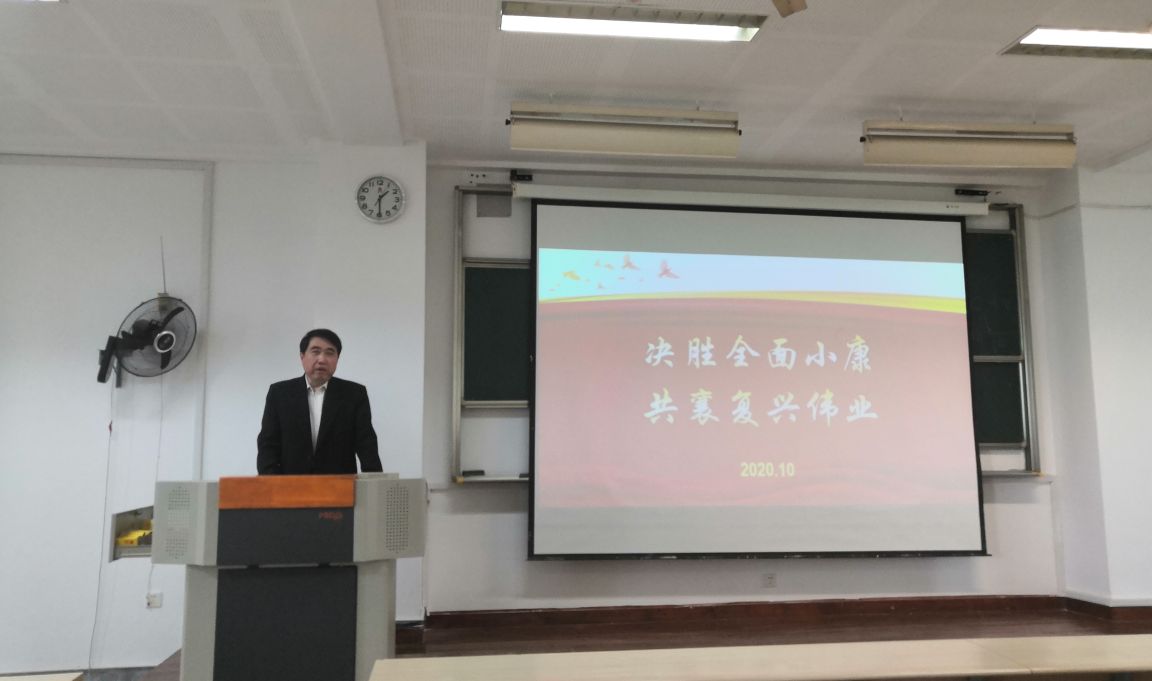 10月21日下午,法学院党委书记杨杰以“决胜全面小康,共襄复兴伟业”为主题为法学院2018级本科生讲授了形势与政策课。
