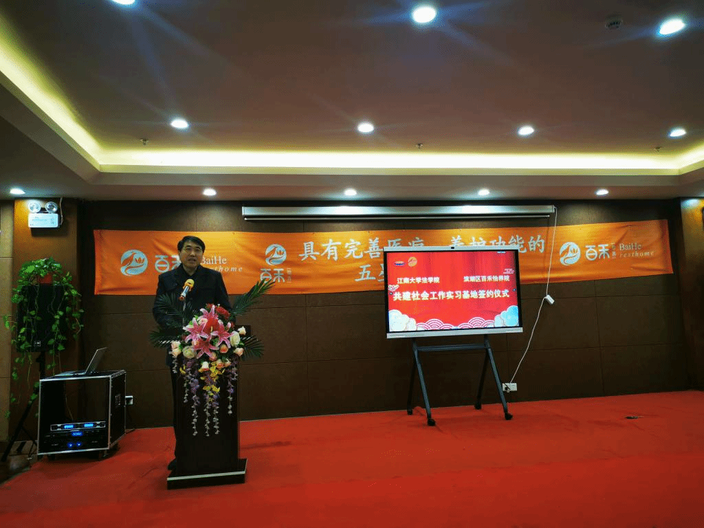 3月16日上午,法学院与滨湖区百合怡养院共建社会工作实习基地签约授牌仪式顺利举行。无锡市民政局养老服务处处长唐国强、百合怡养院院长赵娟、运营院长江静、行政院长刘文俊、法学院党委书记杨杰、党委副书记张慧琪、副院长李俏等参加了签约授牌仪式。