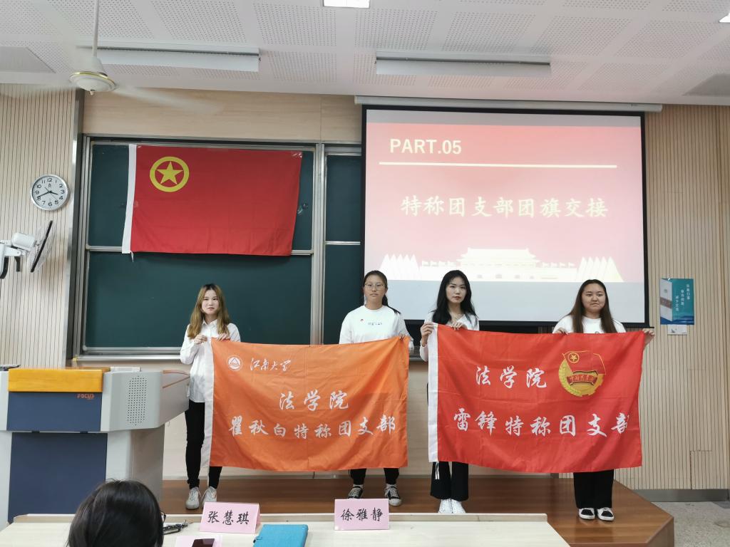 在本次活动中,法学1801“瞿秋白”特称团支部书记张赟和社会工作1803“雷锋”特称团支部书记王娅娅进行特称团支部风采展示。二人分别以特称精神内核为主线,将过去一年中所开展的工作进行了总结。二人所在的特称团支部团结友爱,青春活力,奋斗互助,学风浓郁,在场学员深受鼓舞。在法学院领导和“青马工程”全体营员的见证之下,法学1801团支部与法学2001团支部完成了“瞿秋白”特称团支部的交接工作,社会工作1803团支部与社会工作2002团支部完成了“雷锋”特称团支部的交接工作。