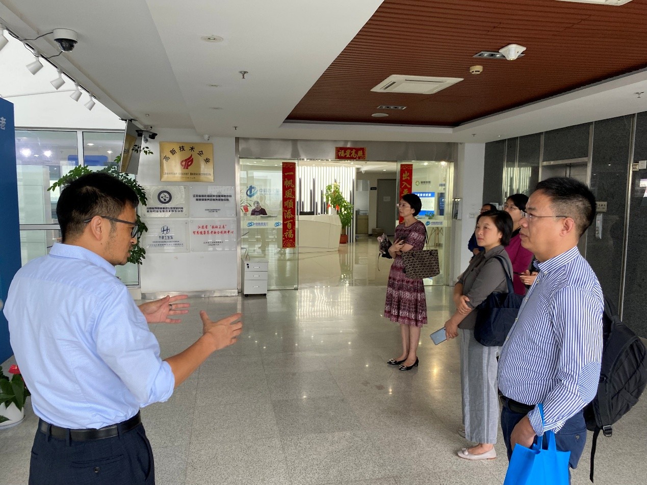 为深入落实中央网信办等8部委联合印发《国家智能社会治理实验基地名单通知》提出 “要深刻理解定位,强化组织领导,编制实施方案和加强督促落实”的要求,法学院高度重视,认真部署,于10月15日上午,组织无锡老龄科学研究中心成员李俏教授、赵向红教授、王金元副教授、李娟副教授、彭青云副教授、安姗姗博士、孙圣博士一行6人,赴江苏中科西北星信息科技有限公司调研智慧健康养老应用场景,研讨基地启动建设方案。