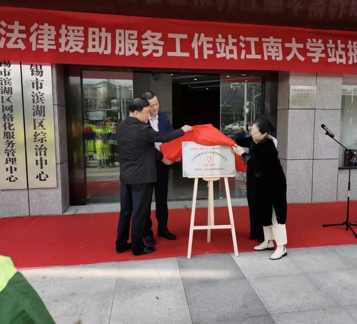 10月26日下午,“法润江苏”恒爱“1+2”法援关爱环卫工项目启动仪式在无锡市滨湖区政法综合信息中心举行,宣告江苏恒爱环卫工法律援助服务站江南大学站正式挂牌。江南大学法学院党委副书记、副院长张慧琪,无锡市滨湖区司法局副局长朱鸿觉、滨湖区环境卫生管理有限公司总经理荣潇丹、江南大学法律援助服务站负责人林悠老师及江南大学法学院学生代表、无锡市滨湖区司法局法律援助中心主任张晓东及工作人员、滨湖区环卫所所长及20位优秀环卫工代表出席了揭牌活动。