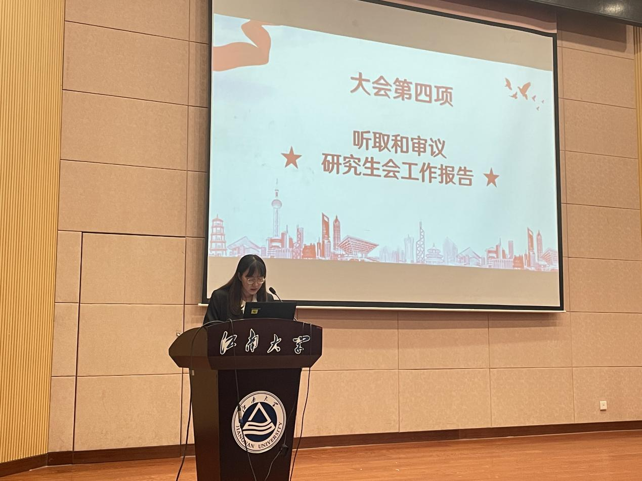 研究生会主席团成员梁宇作研究生会年度工作报告