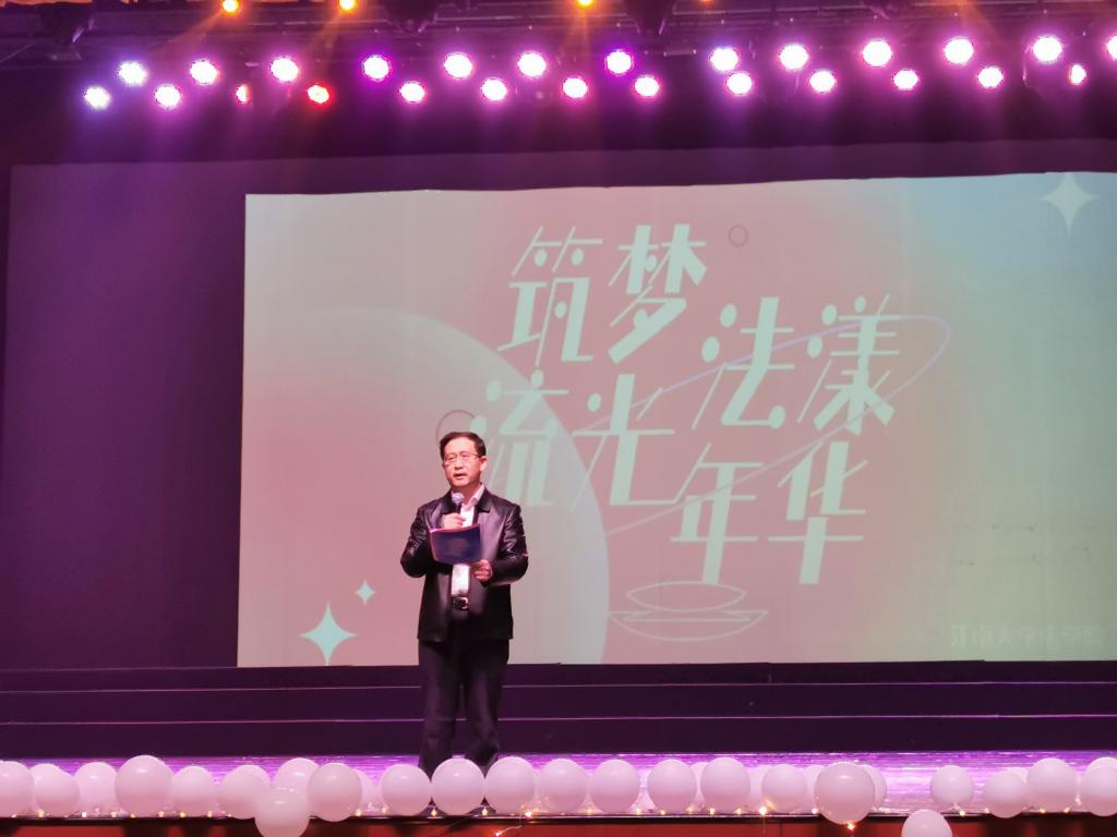 11月21日晚,法学院2022年“筑梦流光,法漾年华”迎新晚会在文浩馆举行。法学院院长王君柏,党委副书记、副院长张慧琪,院办主任华芒,2022级班主任徐钝、孙青山、周悦,辅导员徐雅静、孟飞、缪晶晶出席了本次晚会,法学院各级学生以及其他各学院学生共同参加了本次活动。