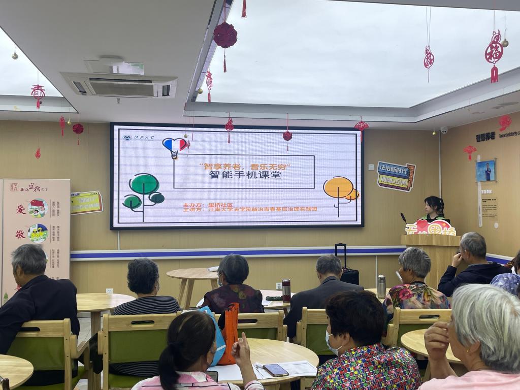 为帮助老年人解决智能技术应用于生活中的难题,让老年人在信息社会和社区生活具有更多的获得感、幸福感、安全感,4月19日下午,法学院“益治青春基层治理实践团”来到华庄街道里桥社区为社区居民开展了“智享养老,耆乐无穷”智能手机课堂活动。学生叶懿涵、乔瑞琳、丁诗雨、申一婷和20余名社区居民参加了本次活动。