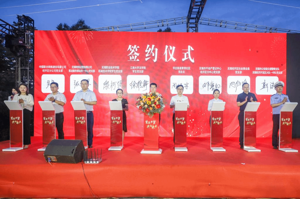 为深入学习贯彻习近平新时代中国特色社会主义思想主题教育,发挥校地共建赋能基层治理的积极作用,激发学生党员服务为民的活力,6月29日,法学院学生党支部与华庄街道景贤社区举行党建联盟签约仪式。华庄街道党工委副书记、政协工委主任费裕,党工委委员陆礼妍,党工委委员金晓华,景贤社区党总支书记周侨宇,江南大学法学院团委书记徐雅静以及辅导员缪晶晶出席了此次活动。