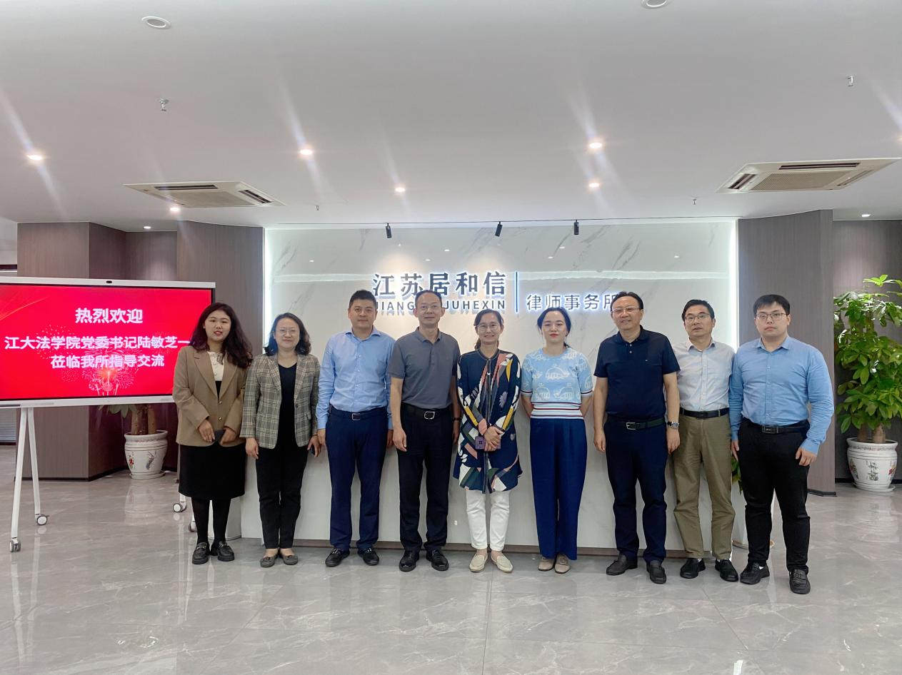 为深入落实“访企拓岗促就业”工作要求,凝聚校友力量,推动学院与董事单位在教学、科研、就业等方面加强合作,10月12日下午,法学院党委书记陆敏芝,党委副书记、副院长胡博,副院长叶敏,法律系教师赵峰,辅导员缪晶晶一行5人赴学院董事单位江苏居和信律师事务所走访调研。江苏居和信律师事务所主任杨伟星律师,名誉主任吴建峰律师,合伙人吴呈涵律师,党支部书记李炜东律师,罗敏慧律师出席了本次活动。
