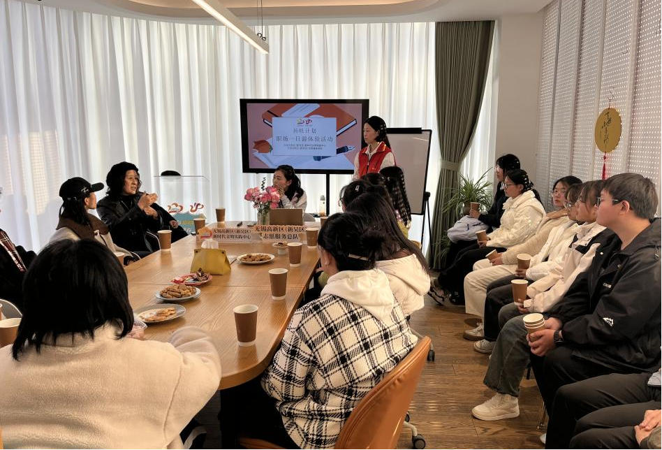 在同“三杯茶”机构的老师交流的过程中,同学们认真倾听、积极提问。周卫东老师就自己在国际社会组织的任职经历作了分享,他鼓励同学们要培养国际思维,主动走出去接触世界,积极提升社会实践等各方面能力。吴艳恒老师分享了有关自身经历的心得感悟,她因身居国外时曾受到他人的热心帮助,回国后便自发组织公益活动,服务于身在无锡的外国友人,坚持公益事业十年来不动摇。整个交流过程轻松活跃,同学们与老师进行了充分互动,得到了极大收获。最后,工作人员带领同学们参观了机构的工作场所,并作了详细讲解,让同学们对社会工作行业的理解更上一层楼。