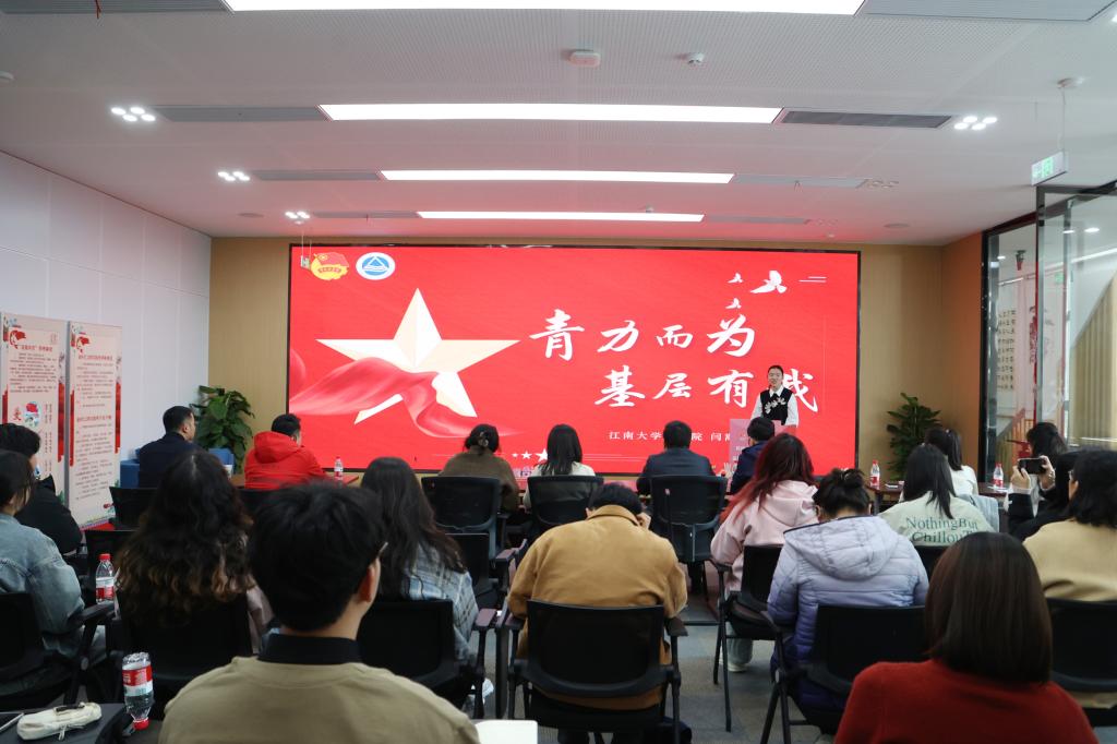 为增强党建引领作用,巩固和扩大党的宣传阵地,发挥党团特色教育,弘扬新时代“枫桥经验”,引导青年以实际行动走进基层、服务基层、实践基层,激发基层治理新动能,3月20日下午,江南大学法学院与华庄街道党群服务中心开展“弘扬新枫桥经验,打造基层善治新局面”主题党团共建活动。法学院分团委书记徐雅静、辅导员缪晶晶,优秀学生党员、团员和“益治青春”基层治理实践团队员以及华庄街道工作人员共计40余人参与此次活动。