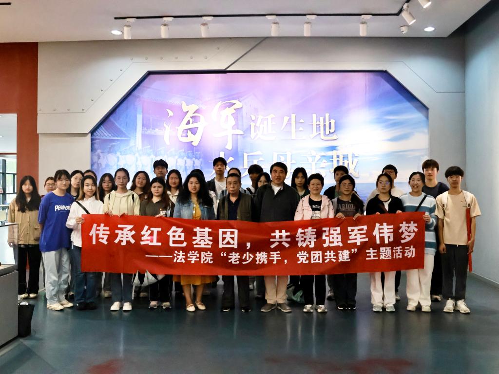 为强化党团合作纽带,弘扬爱国主义精神,深化青年群体对海军历史的认知与感悟,10月13日,法学院关工委常务副主任杨杰,校离退休处第五党支部成员、党建辅导员缪晶晶、院特称团支部学生代表共50余人赴中国人民解放军海军诞生地纪念馆开展主题活动。