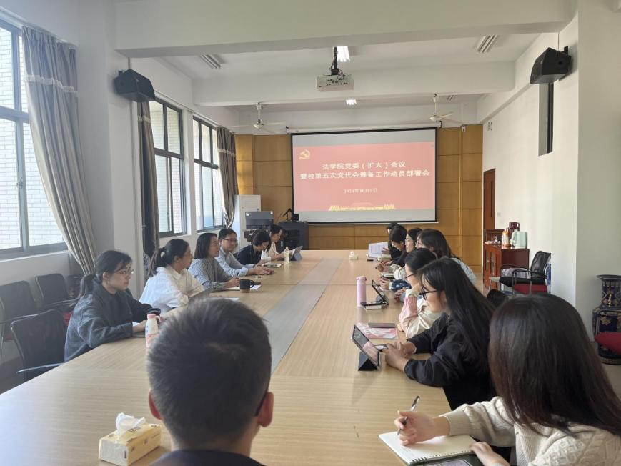 10月9日下午,为学习贯彻习近平总书记在全国教育大会上的重要讲话精神,并全面动员和部署江南大学第五次党代会的筹备工作,法学院党委(扩大)会议暨校第五次党代会筹备工作动员部署会在A316会议室召开。出席本次会议有法学院党政领导班子、专职组织员陆芳、党建辅导员缪晶晶以及各师生党支部书记,会议由学院党委书记陆敏芝主持。