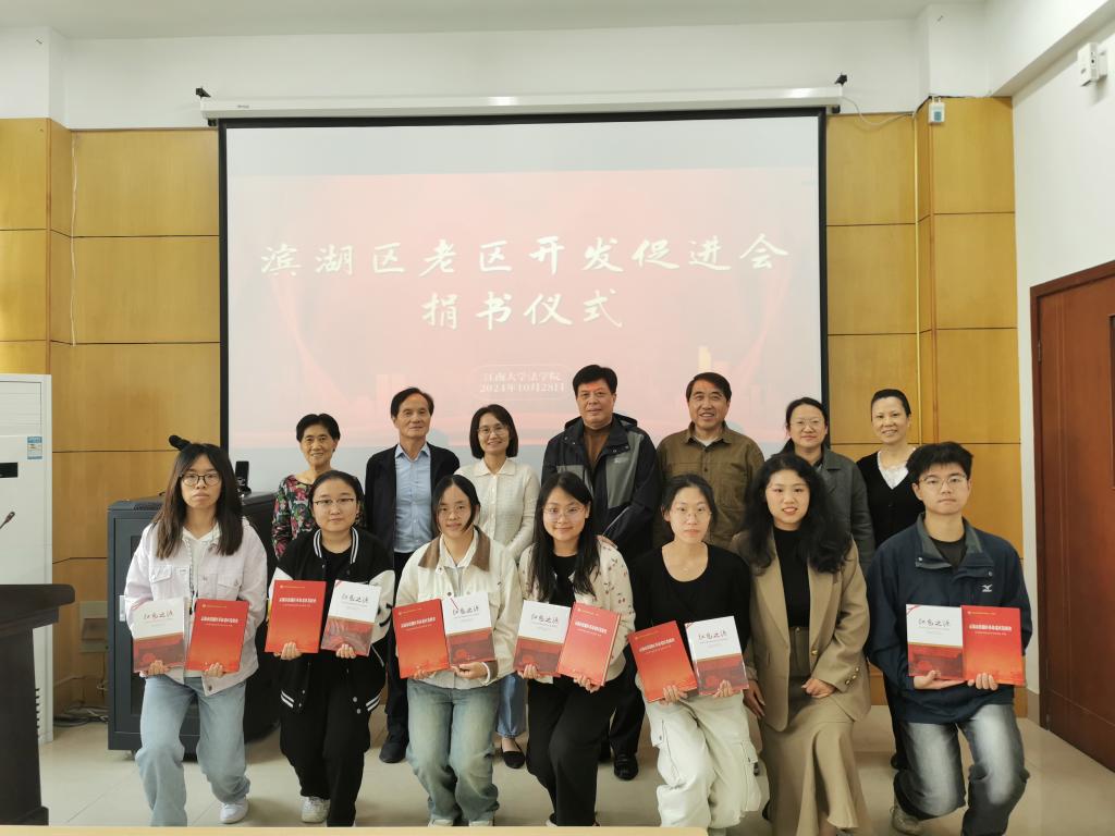为传承红色基因、强化校地合作,10月28日下午,法学院与滨湖区老区开发促进会共同举办革命老区发展史书籍捐赠仪式。法学院党委书记陆敏芝,院关工委常务副主任杨杰,老促会会长陈国忠,副会长沈利民等出席会议,会议由法学院党委副书记、副院长胡博主持。
