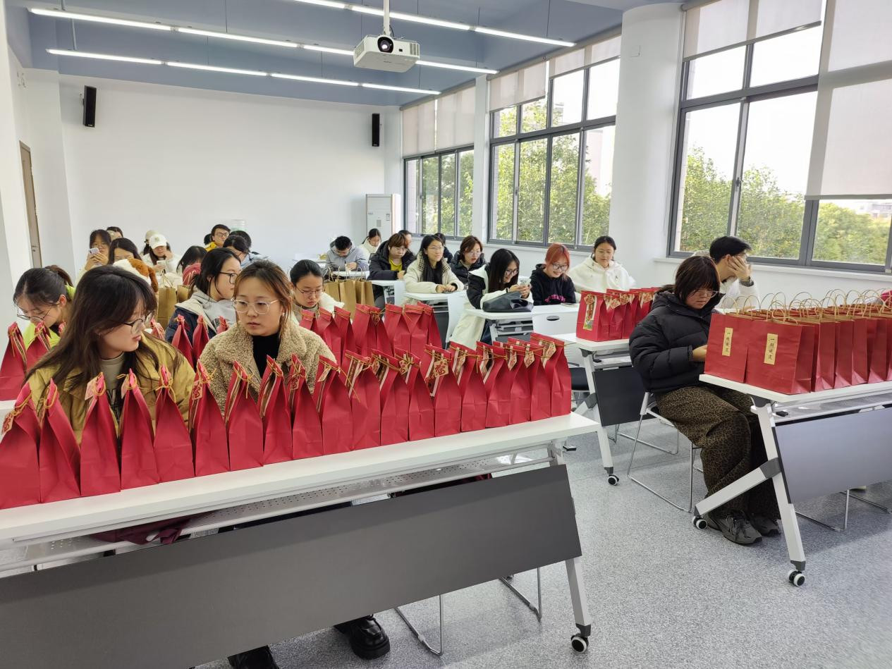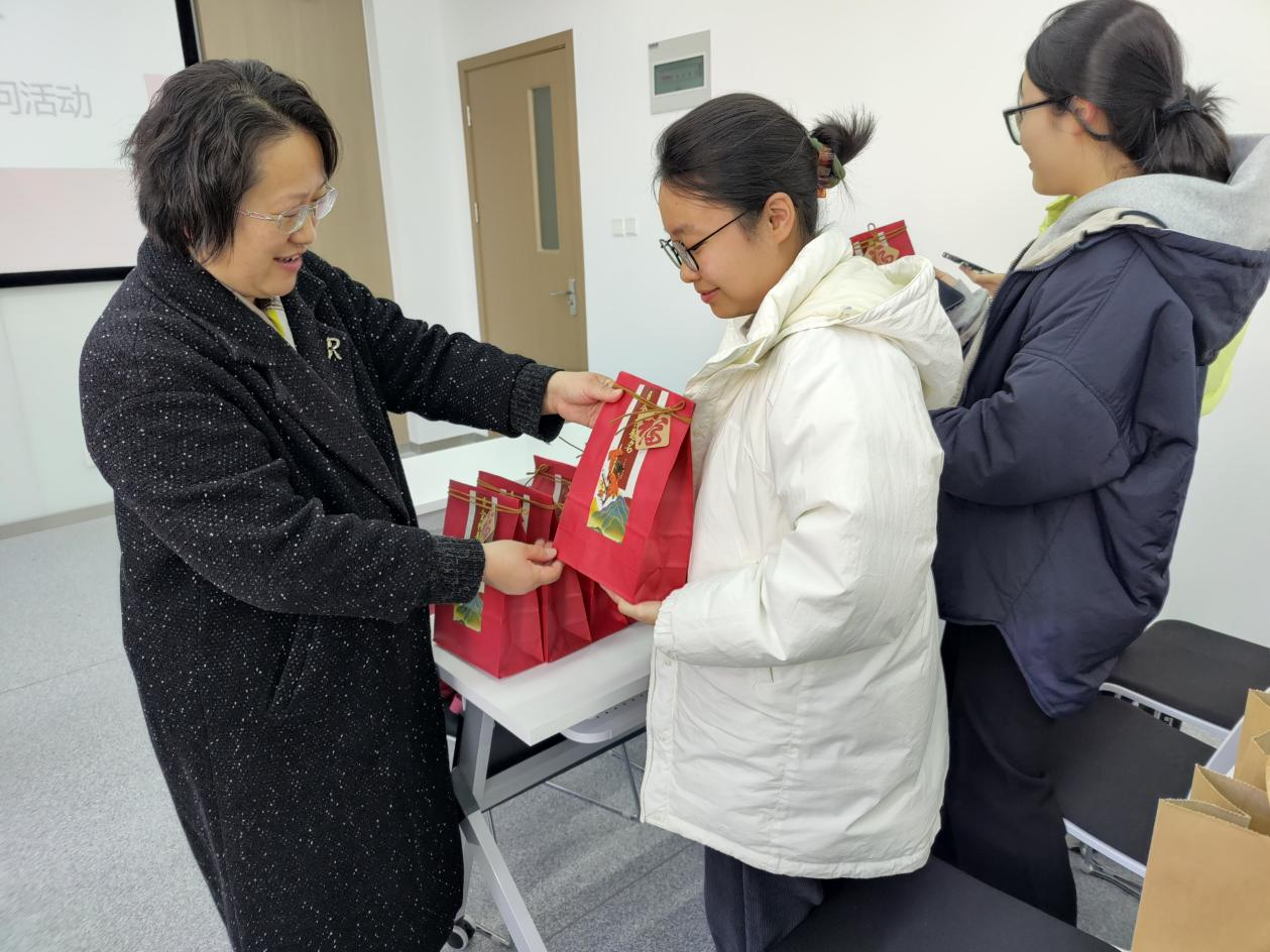 活动伊始,胡博作动员讲话,代表法学院对全体考研学子表达关心和慰问。她肯定了考研学子一年的辛苦付出,为考研学子送上祝福,并给同学们提出了三点建议:一是坚定信心,坚持到底。考研重在坚持,无论考研结果如何,再咬紧牙关,一路冲刺;二是调节情绪,放平心态。在冲刺阶段,保证复习进度的同时,要学会释放情绪,切忌浮躁、焦虑,适当排解自己的不良情绪,尽量让自己用最好的状态迎接考试;三是劳逸结合,努力冲刺。在考研冲刺阶段,需要注意保暖和饮食并做好个人防护,避免风寒发烧感冒影响考试。随后,胡博和帕日旦木为考研学子分发学院精心准备的“金榜题名”考研大礼包。定制礼包中装有七件暖心礼品,寓意满满,祝福大家金榜题名、一战成硕。希望这些美好心意能够为全体考研学子温暖护航,化为他们前进途中的磅礴力量,支撑他们矢志奋斗,考取心仪院校。