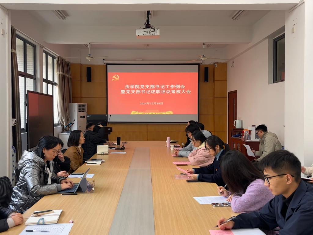 12月18日下午,法学院党委在学院A316会议室组织召开2024年度基层党支部书记述职评议考核会议。法学院党委书记陆敏芝,党委副书记、副院长胡博,党委纪检委员、副院长叶敏,各师生党支部书记及党员代表等30余人参加会议。会议由法学院专职组织员陆芳主持。