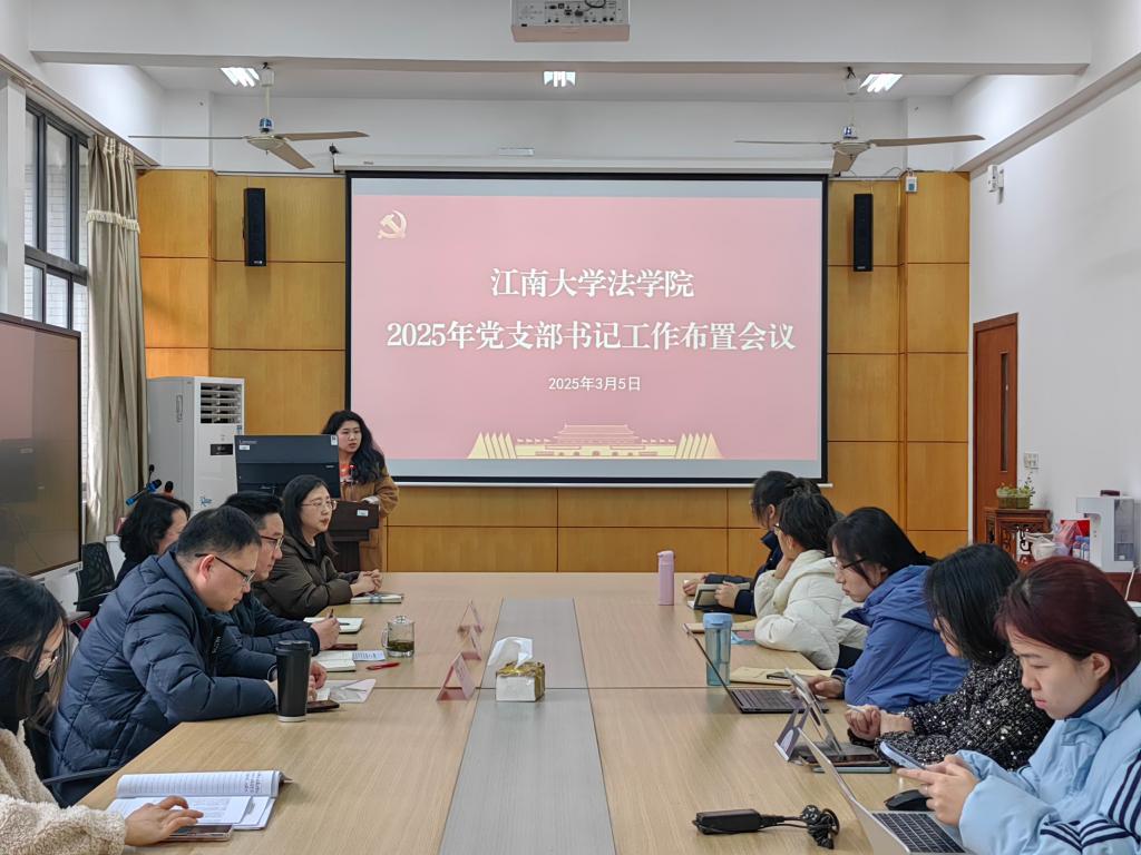 为进一步提升基层党组织标准化规范化建设水平,3月5日,法学院举行2025年春季学期党支部工作会议,法学院党委书记陆秦,党委副书记、副院长胡博,专职组织员陆芳以及全体党支部书记出席此次会议,会议由党建辅导员缪晶晶主持。