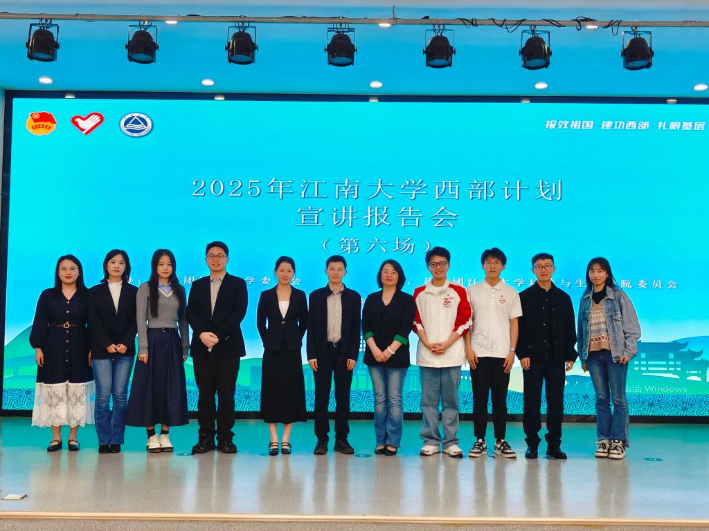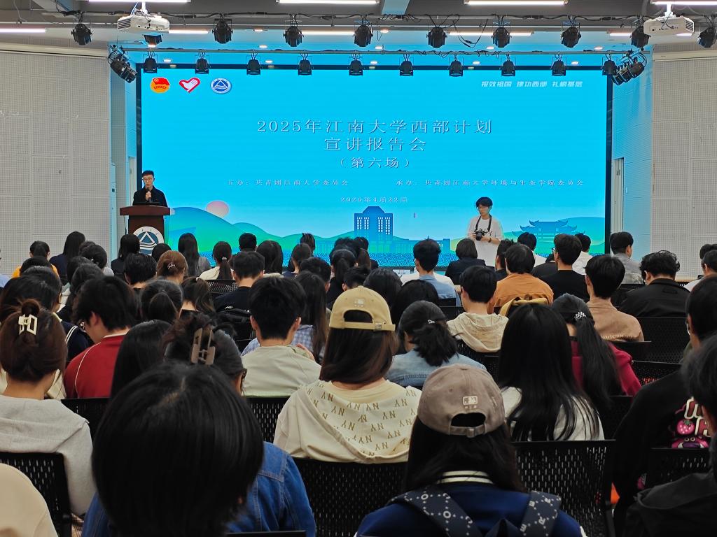 4月22日下午,环境与生态学院在北区大学生活动中心F105报告厅举办了江南大学西部计划和乡村振兴计划宣讲报告会(第六场),旨在引导青年学子深入基层,助力乡村振兴。团锡山区委副书记张启睿,锡山融媒体中心新媒体编辑冯丽娜,团羊尖镇委副书记高浩炜,团厚桥街道工委副书记严萌,羊尖镇2024年乡村振兴计划志愿者迟美迪,鹅湖镇2022年乡村振兴计划志愿者窦子璇,环境与生态学院党委副书记、副院长胡娟,江南大学西部计划宣讲团成员余柳锋,江南大学第25届研究生支教团志愿者张旭航等出席宣讲会。学院2025届毕业生、学生党员、入党积极分子、青马班学员等200余名同学参会。活动由环境与生态学院辅导员李猛主持。