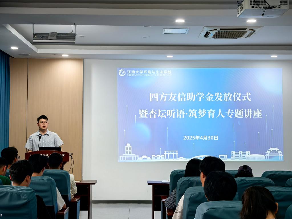 4月30日下午,环境与生态学院于学院楼D303会议室举办四方友信助学金发放仪式暨“杏坛听语·筑梦育人”专题讲座。辅导员李东辉、38名受助学生共同参与活动,通过“资助+育人”双轨并行的形式,深化感恩教育、诚信教育与安全教育实效。