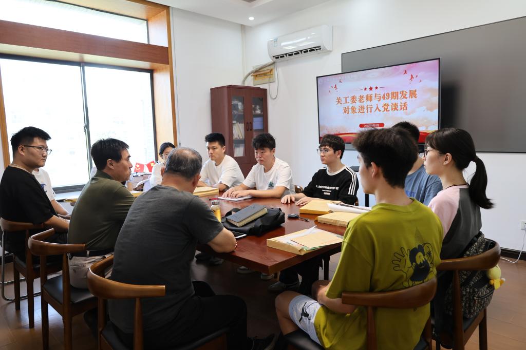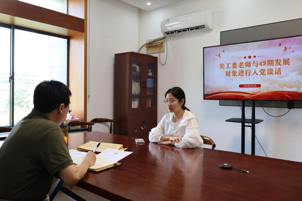 组织员与发展对象深入谈话,是发展党员工作中不可或缺的关键环节。6月5日,环境与生态学院“杏坛听语”活动特邀学院关工委委员、资深党建组织员衡延笃老师和黄庆发老师,与2025年上半年新发展学生党员开展了一次深入的访谈。此次“杏坛听语”的主题是:倾听初心,启航新程。