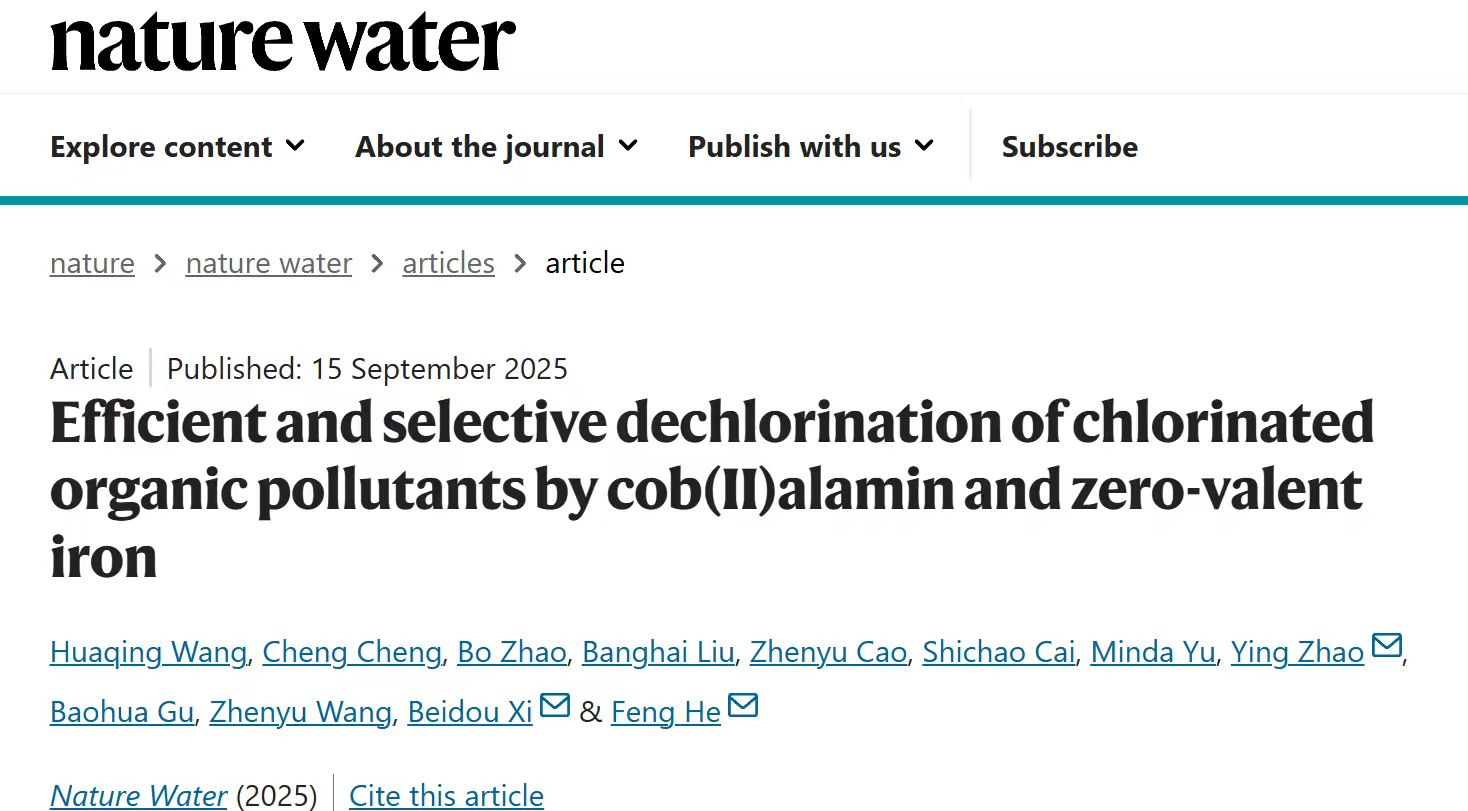 9月15日,江南大学何锋教授团队联合中国环境科学研究院席北斗研究员团队在《Nature Water》(IF:24.1)发表重要研究成果:Efficient and selective dechlorination of chlorinated organic pollutants by cob(II)alamin and zero-valent iron,报道了受天然脱卤酶启发而开发的由维生素B12(钴胺素)与微米零价铁(mZVI)组成的仿生系统,实现了水体氯代有机污染物的高效脱氯和资源回收。