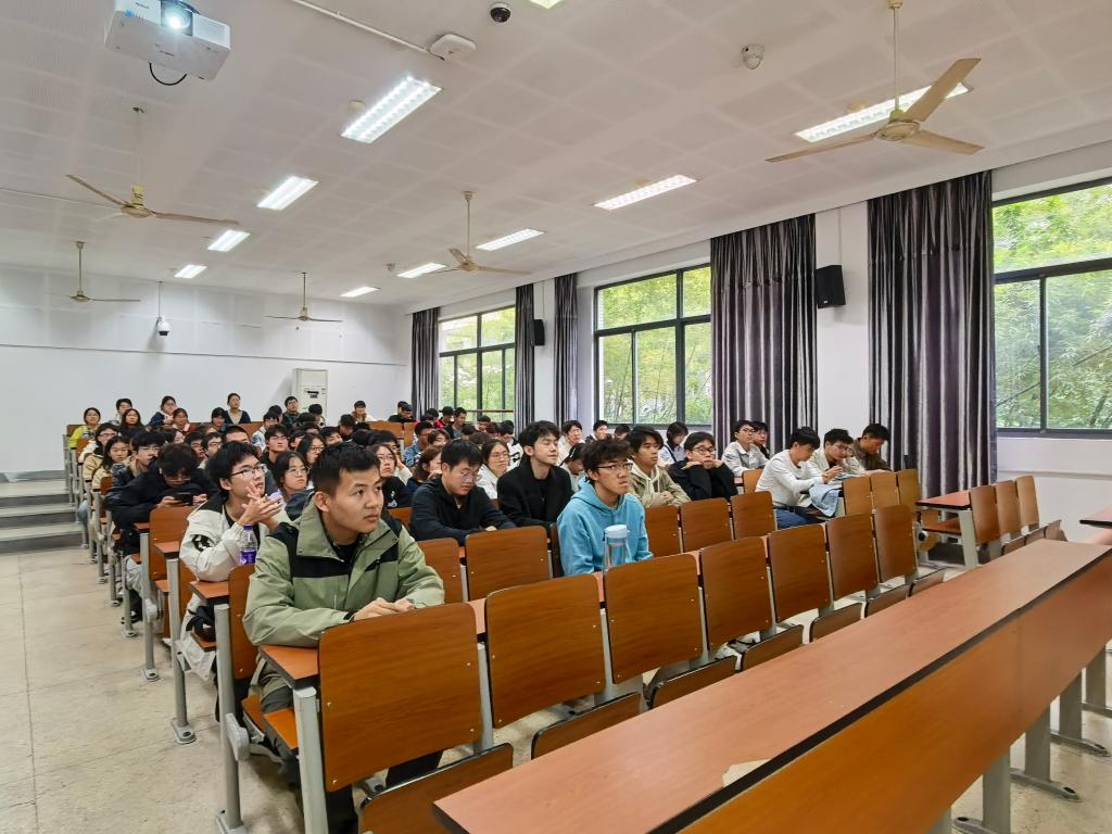 入党启蒙教育方面,李猛系统介绍了从提交入党申请书到成为一名正式党员的全流程,并生动讲述了多位在学术科研、志愿服务、学生工作等领域表现突出的优秀学生党员典型,用榜样的力量激发新生前进动力。此外,他介绍了学院分团委的组织架构与品牌活动,并详细解读了“第二课堂”学时制度及实施细则,鼓励新生们积极投身团学工作与实践活动,在更广阔的舞台上锻炼自我、施展才华,实现知识、能力、素养的全面协调发展。