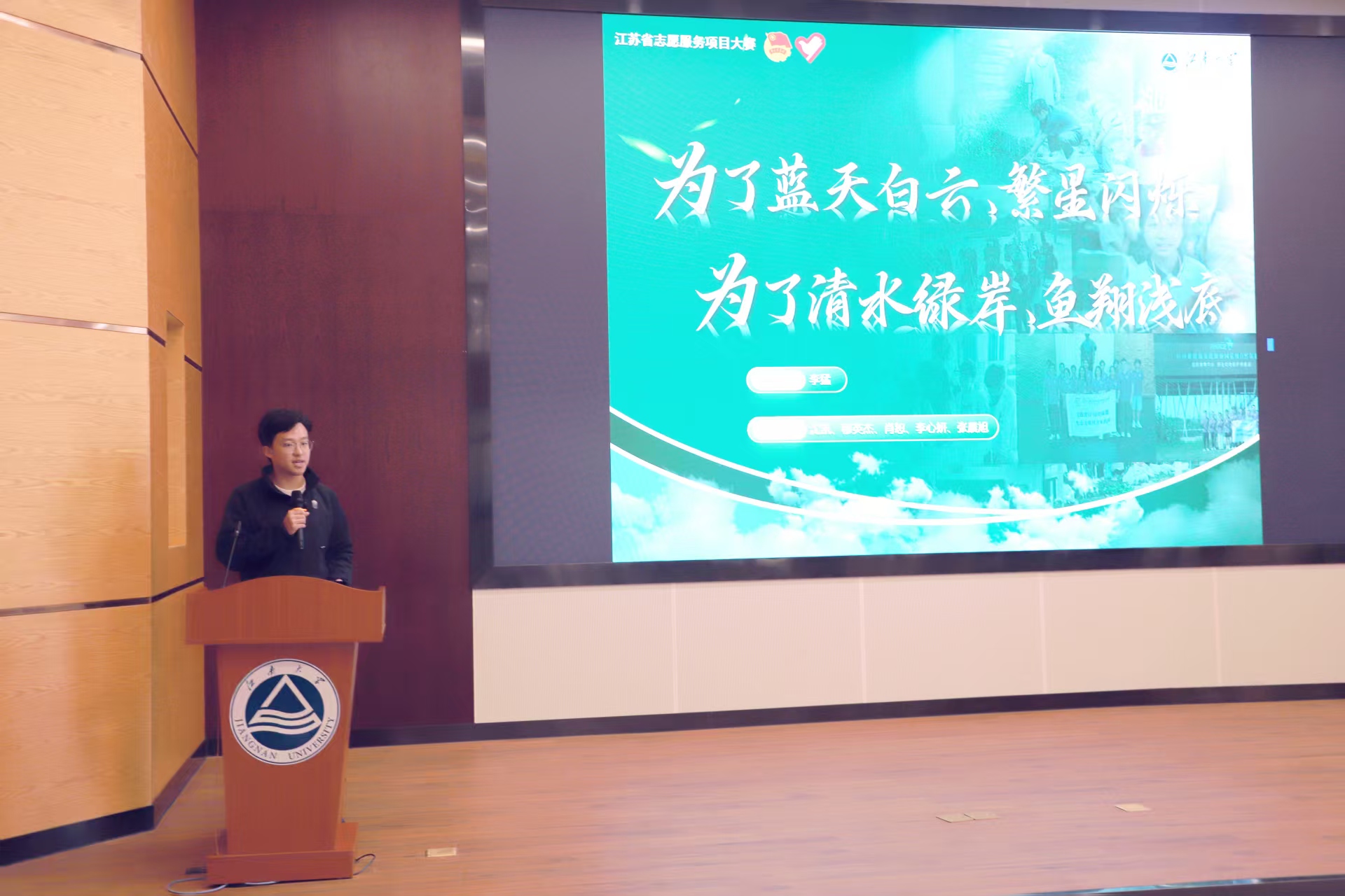 公开课主体环节采用“实践案例+志愿故事+理论阐释”的三维宣讲模式,三位嘉宾带来精彩分享。江南大学环境与生态学院校友张福鑫以《厨余垃圾管理探索与ESG管理》为题,结合自身参与的城市厨余垃圾处理项目,从技术研发、成本控制、政策适配三个维度,解析了“变废为宝”的环保产业路径,强调青年学生应兼具专业素养与社会责任。环境与生态学院团委副书记、2023级硕士研究生沈凯分享了“绿碳方舟”生态科普志愿服务项目经验,通过“中小学环保课堂”“社区垃圾分类督导”等鲜活案例,展现了青年学子用脚步传播绿色理念的担当。马鼋学会青年理论宣讲员、马克思主义学院2025级硕士研究生潘美琪以《深学笃行习近平生态文明思想,挺膺担当建设美丽中国》为题,阐释了“绿水青山就是金山银山”理念的实践伟力,引导同学们将个人发展融入生态强国建设大局。