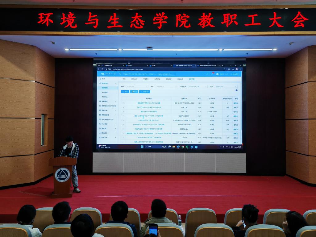 为切实提升教学管理与专业建设能力,学院还组织了教务平台专项培训活动,围绕培养方案与专业认证的管理、教学大纲录入、成绩录入等核心功能进行实操演示。现场互动积极,教务人员针对教师提出的系统操作问题进行了详细解答,有效提升了教师的平台应用能力。此次大会既是一次思想洗礼,也是一次业务赋能。与会教师一致表示,将以更加饱满的热情、更加务实的作风,恪守教书育人职责,弘扬爱岗敬业精神,为培养更多德才兼备的生态环保人才、推动学院各项事业再上新台阶贡献智慧与力量。